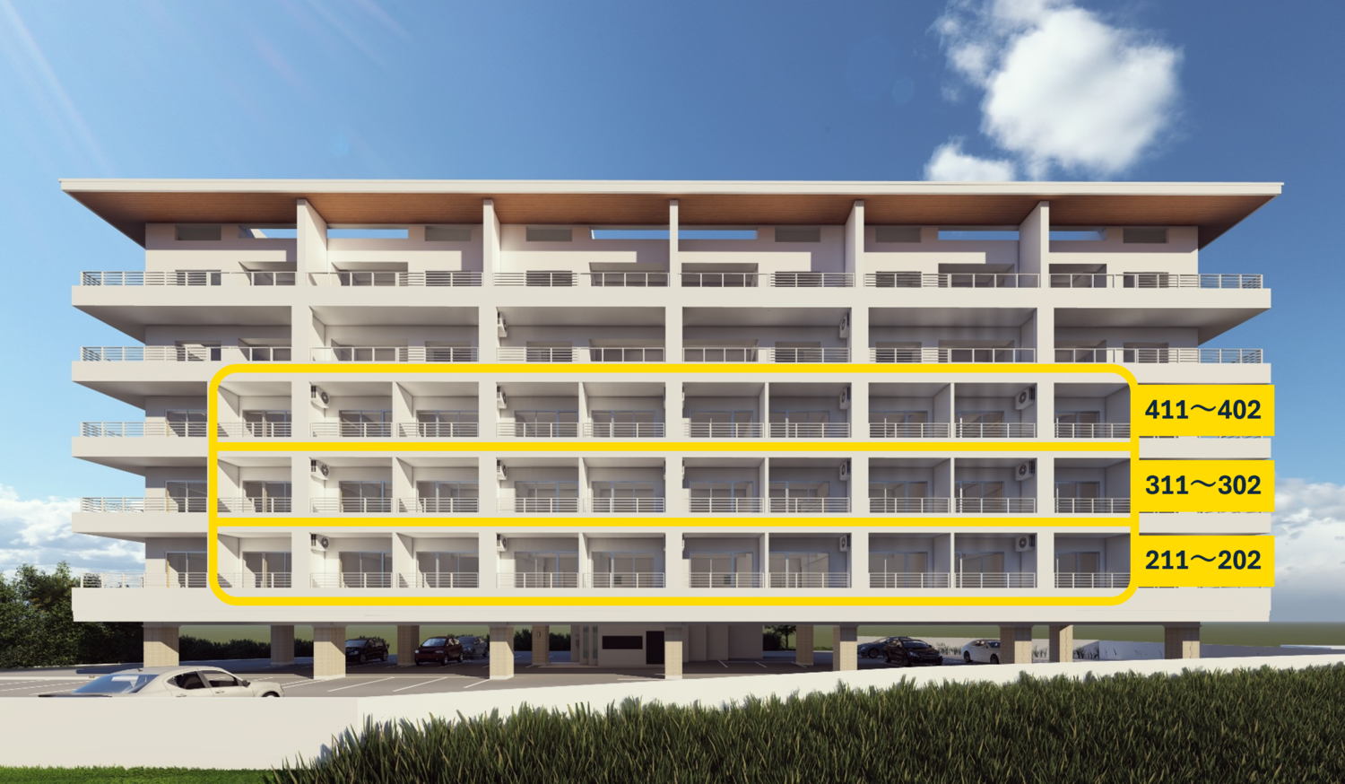 【新築11月末完成予定】\全室オーシャンビュー!/充実した設備とセキュリティが魅力的◎キーレスで入館時や玄関でも鍵を取りだす必要なし!駐車1台無料・エアコン・乾燥機付き・ネット無料。