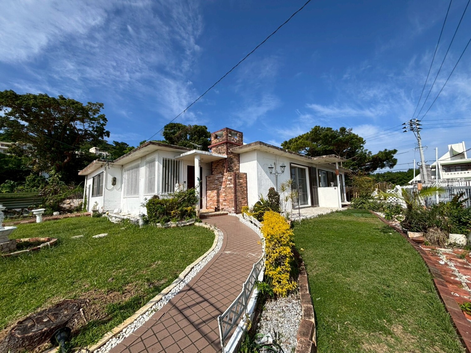 お庭はレンガと丸い形の芝生がおしゃれで、お庭からは海が見えます!