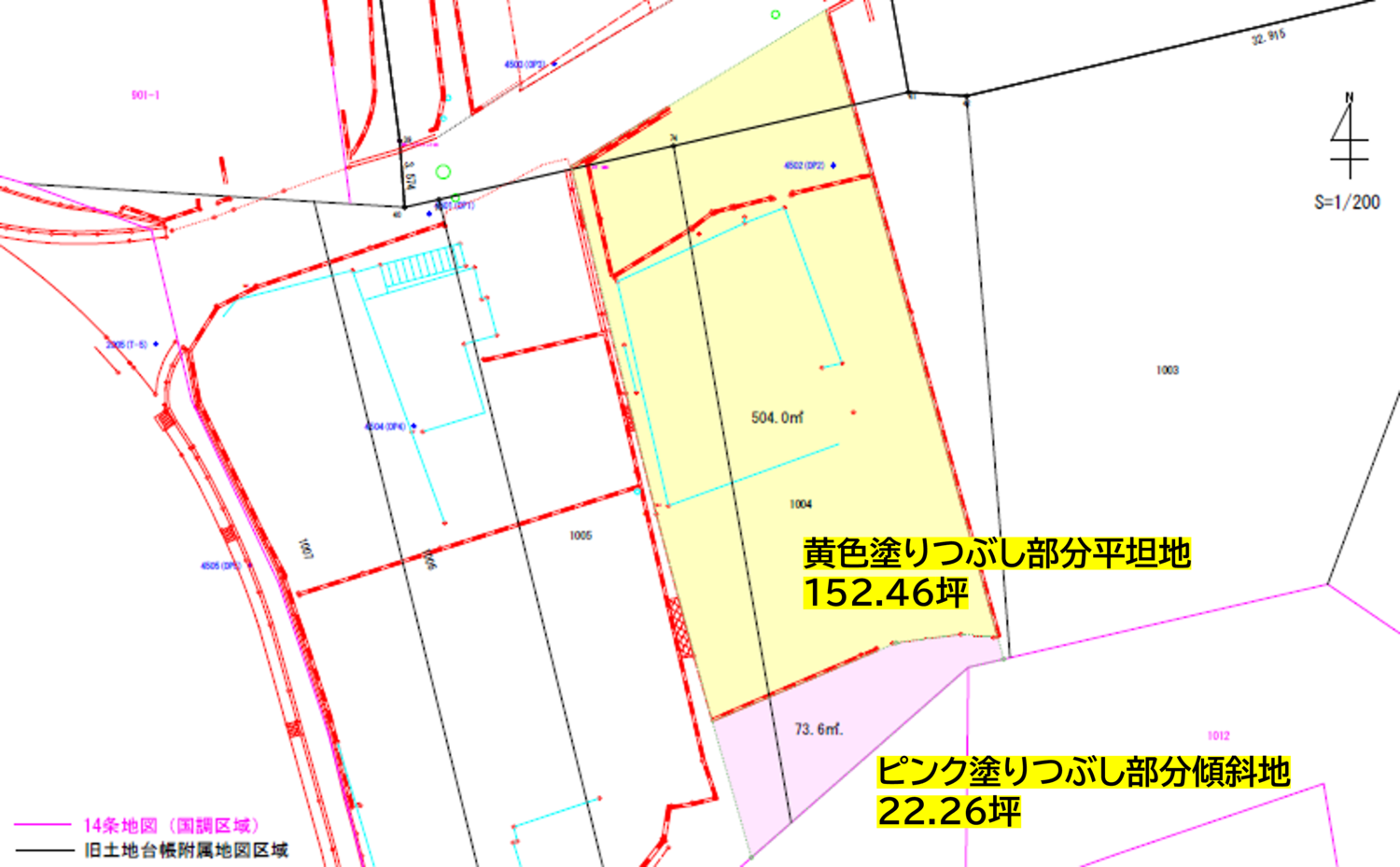 ▸当該敷地内に高低差有り(正味面積152.46坪)